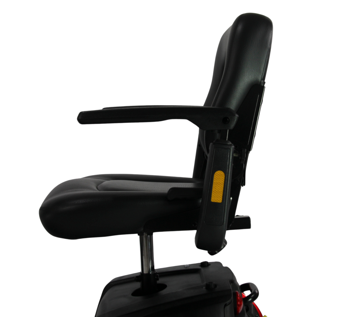 This 6mph mobility scooter has been built for pavement use, but benefits from a full, state-of the-art front and rear suspension, a fully adjustable captain's seat and front and rear LED lights.