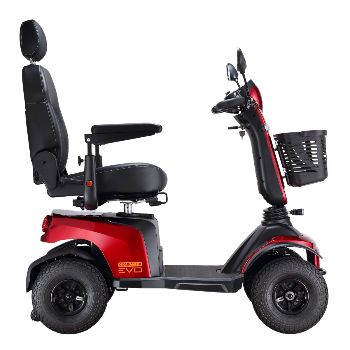 The Galaxy 2 Compact EVO is a super smooth, modern, 8mph mobility scooter that is ideal for use on a huge range of terrains from pavements to bumpy paths, gravel and grass.